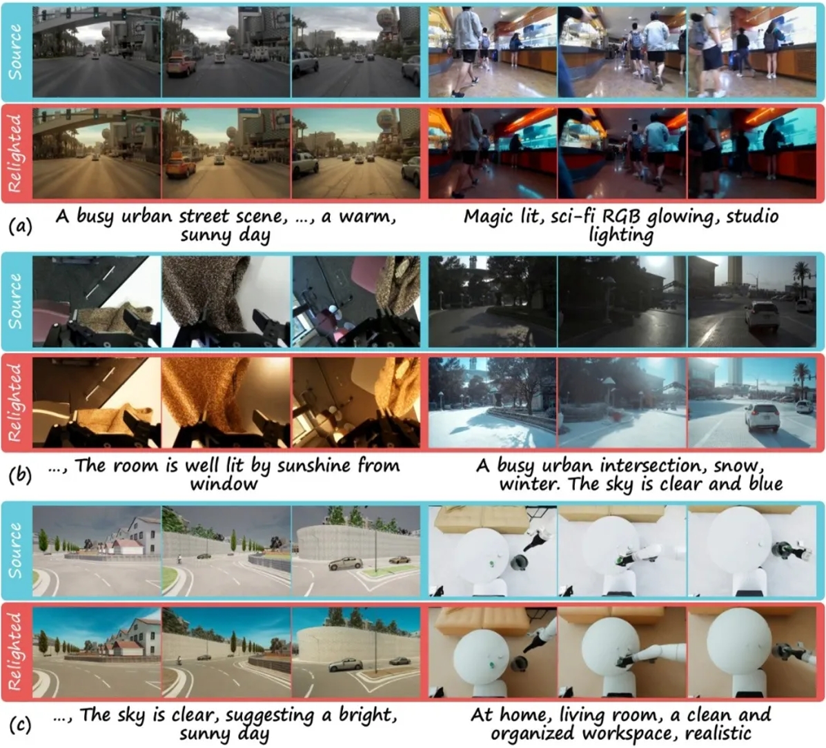 光照和纹理编辑是世界到世界迁移的关键维度,这对于包括模拟到真实和真实到真实视觉数据的扩展以支持具身人工智能的应用来说具有重要价值。现有的技术通过生成式重新渲染输入视频来实现迁移,例如视频重新光照模型和条件世界生成模型。然而,这些模型主要局限于训练数据的领域(例如肖像),或者陷入时间一致性和计算效率的瓶颈,尤其是在输入视频涉及复杂动态和长时间的情况下。