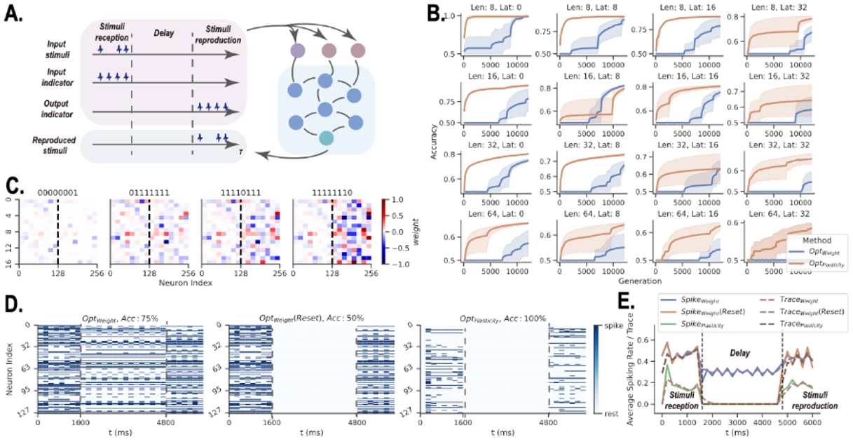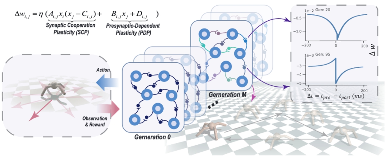 该框架由两个核心组件构成:突触协作可塑性(SCP)和前突触依赖可塑性(PDP)。SCP通过考虑前后突触神经元活动动态调整突触强度,PDP基于前突触活动调整并引入偏置以保持稳定性。通过演化策略优化这些可塑性参数,网络能够形成独特且适应性强的可塑性规则。