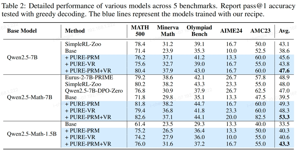 本研究中,我们发现PRM导致奖励破解的主要原因在于:强化学习中典型的求和形式信用分配机制会诱使大型语言模型破解高奖励步骤。为在训练阶段释放PRM潜力,我们提出PURE(过程监督强化学习)方法。其核心在于采用最小形式信用分配,将价值函数定义为最小未来奖励。该方法统一了测试与训练阶段对过程奖励的优化目标,通过限制价值函数取值范围及更合理的优势分配机制,显著缓解了奖励破解问题。通过在多个基础模型上的实验,我们发现启用最小形式信用分配时,基于PRM的方法实现与RLVR相当的推理性能:基于Qwen2.5-Math-7B模型微调在AMC23竞赛中达到82.5%的准确率,并在5个基准测试中实现53.3%的平均准确率。而经典的求和形式信用分配甚至在训练初期就导致训练崩溃。此外,我们总结了训练过程中遇到的奖励破解案例,并分析了训练崩溃的根源。