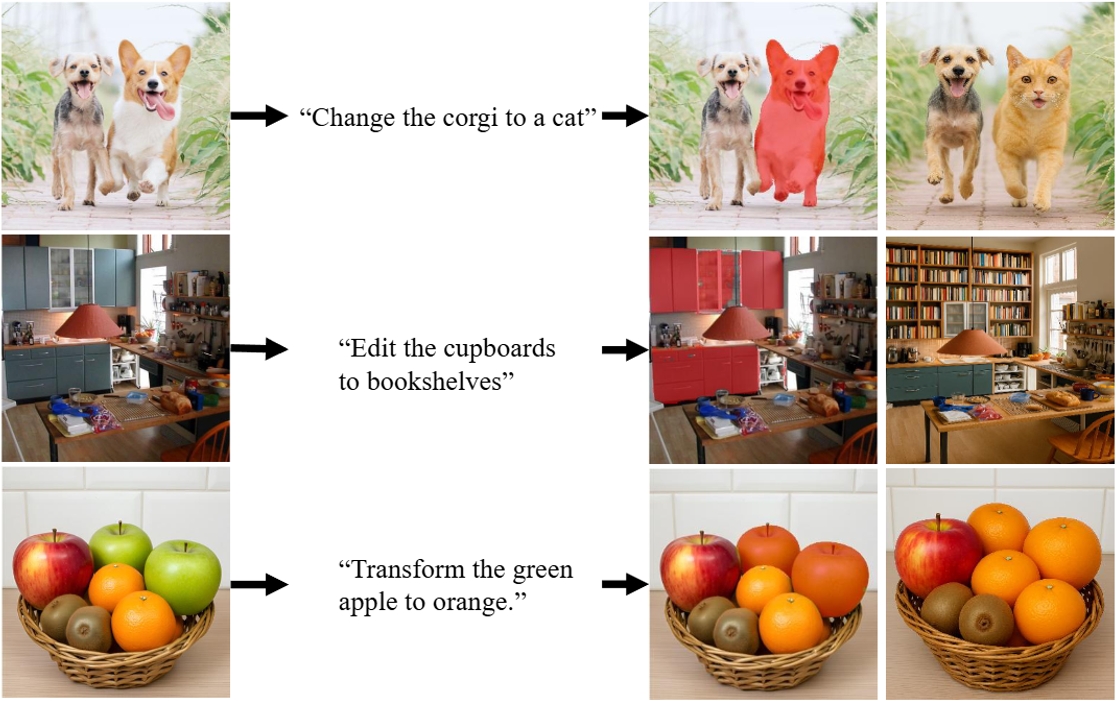FOCUS采用双分支视觉编码器,同时捕获全局语义上下文和细粒度空间细节。此外,我们利用基于MoVQGAN的视觉分词器来生成离散视觉token,以提升生成质量。为了实现精确且可控的图像编辑,我们提出了渐进式多阶段训练流程,其中分割掩码经过联合优化,并用作空间条件提示来指导扩散解码器。这一策略将视觉编码、分割和生成模块进行对齐,有效地将分割感知的感知与细粒度视觉合成连接起来。