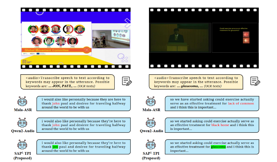 自动语音识别(Automatic Speech Recognition,ASR)系统在常规条件下已取得显著性能,但在需要领域特定知识的情境化场景(如会议报告)中,往往难以有效利用长时上下文信息。其主要原因在于模型可用的上下文窗口受限,以及大量上下文噪声中有效信息的稀疏性。为解决这一问题,我们提出了SAP2方法,这一全新框架能够通过两阶段动态剪枝与整合相关的上下文关键词。具体而言,每个阶段均采用我们提出的基于语音驱动的注意力池化机制,从而在保留与语音高度相关信息的同时,高效压缩上下文嵌入。实验结果表明,SAP2在SlideSpeech 与LibriSpeech数据集上均取得了当前最优性能,其字错误率(WER)分别达到 7.71%与1.12%。在 SlideSpeech上,我们的方法相较于无上下文基线,在有偏关键词错误率(B-WER)上实现了 41.1% 的显著下降。此外,SAP2还展现出良好的可扩展性,在面对大规模上下文输入时依然能够在两项数据集上稳定保持优异表现。