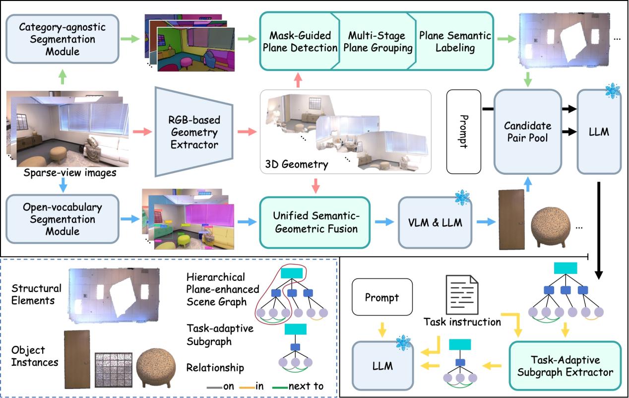 14. Sparse3DPR: 基于稀疏RGB视图的免训练三维场景分层解析与任务自适应子图推理