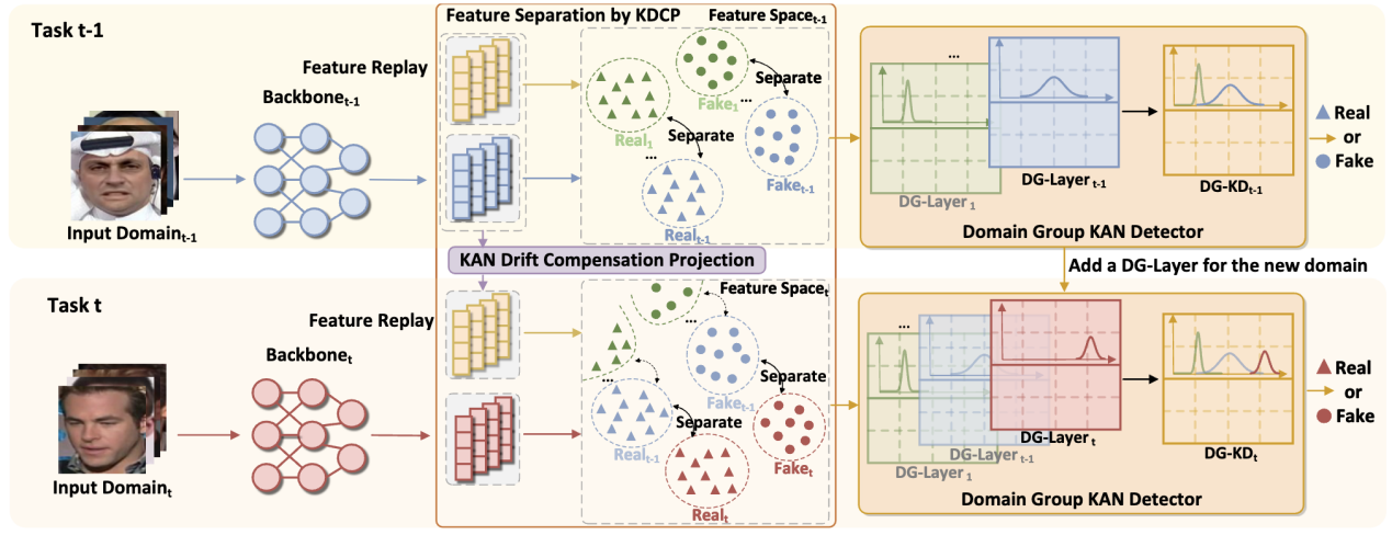 随着人脸伪造技术的快速迭代,伪造检测器必须能持续学习新的攻击手段,这使其成为一个连续学习问题。然而,传统模型在学习新任务时,往往会严重“灾难性遗忘”旧知识。