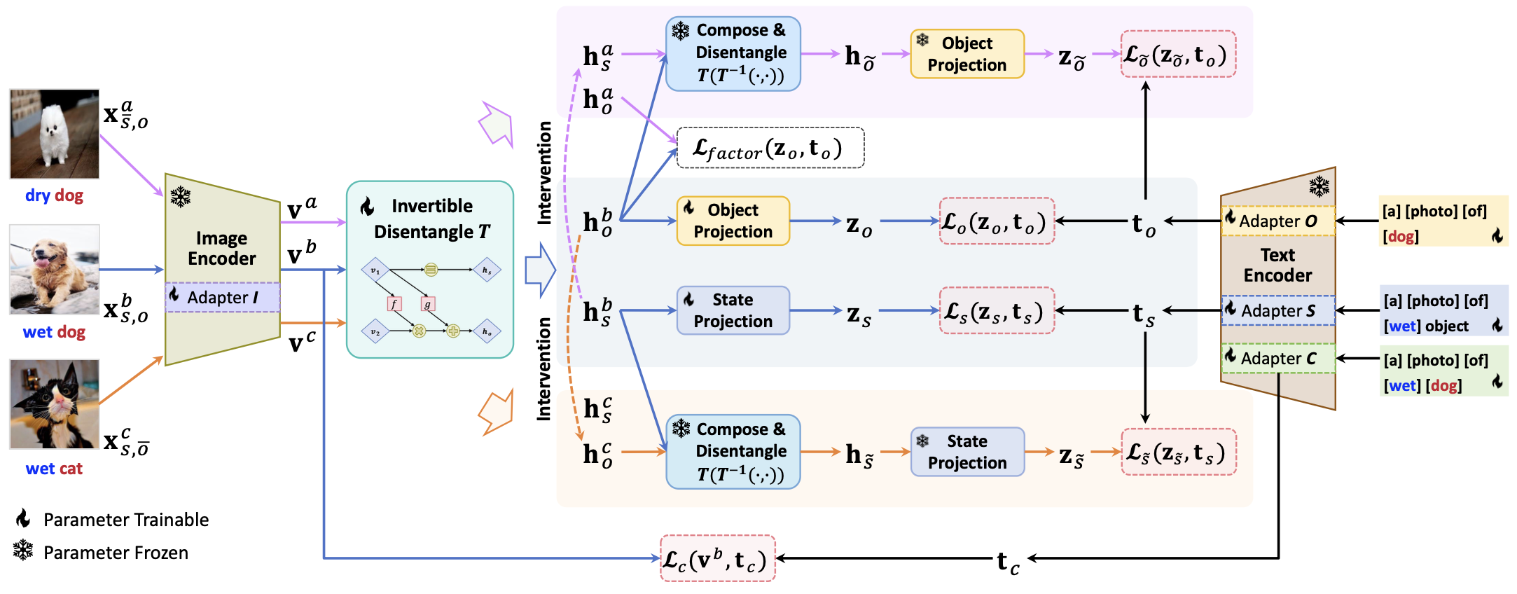 组合零样本学习(CZSL)是人工智能领域的一个关键挑战,旨在识别图像中未见过的状态-对象组合。现有方法在状态-对象解耦和学习因果干预不变性表征方面存在局限,导致对未见组合的泛化能力不足。论文针对CZSL任务中的解耦问题,提出了一种新的可逆因果架构,通过解耦-组合-再解耦机制,采用可逆神经网络、因果干预和反事实生成技术,在图像的隐式解耦表空间中对状态/对象进行因果干预,从而生成反事实的新的组合,并对该新组合进行重新解耦,最后在解耦表征、组合表征空间中分别与文本的对齐,实现图像的状态-对象解耦,从而增强组合零样本识别的鲁棒性。实验结果表明,该框架在封闭世界和开世界设置下均达到了最先进的性能,尤其在未见组合上表现突出,验证了所提方法的泛化能力与因果解耦的有效性。