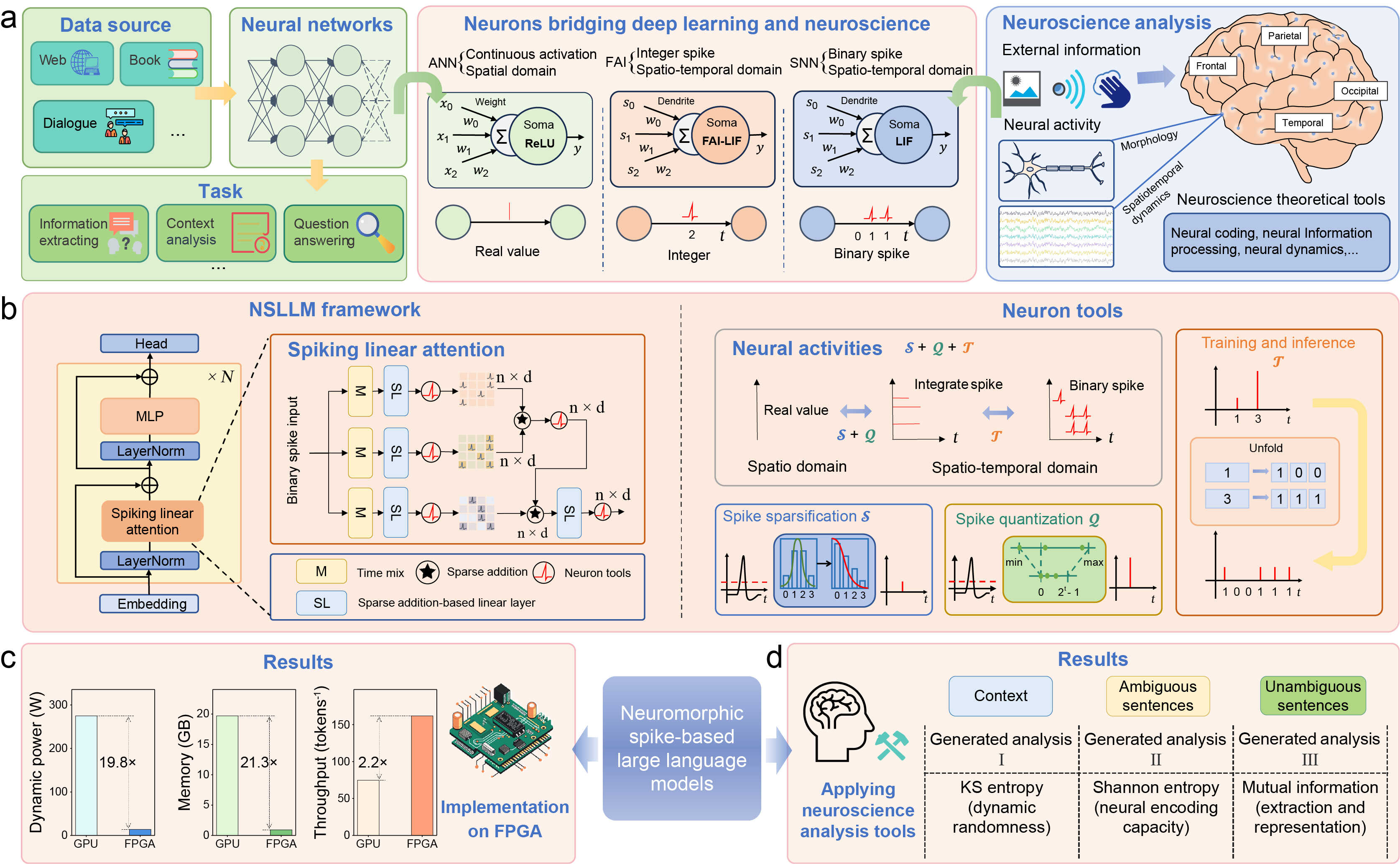 神经科学的研究表明,人脑通过稀疏和事件驱动计算优化能耗,促进信息传递,并增强系统的可解释性。基于这一思路,该团队构建了一个跨学科的统一框架,提出了能够替代传统 LLMs 的神经形态方案,并在常识推理以及更复杂的大模型任务中(如阅读理解、世界知识问答、数学等)保持了与主流同规模模型相当的性能表现。本研究所提出的框架不仅推动了高效AI的前沿发展,为大语言模型的可解释性提供了新视角,并为未来神经芯片的设计提供了宝贵的见解。