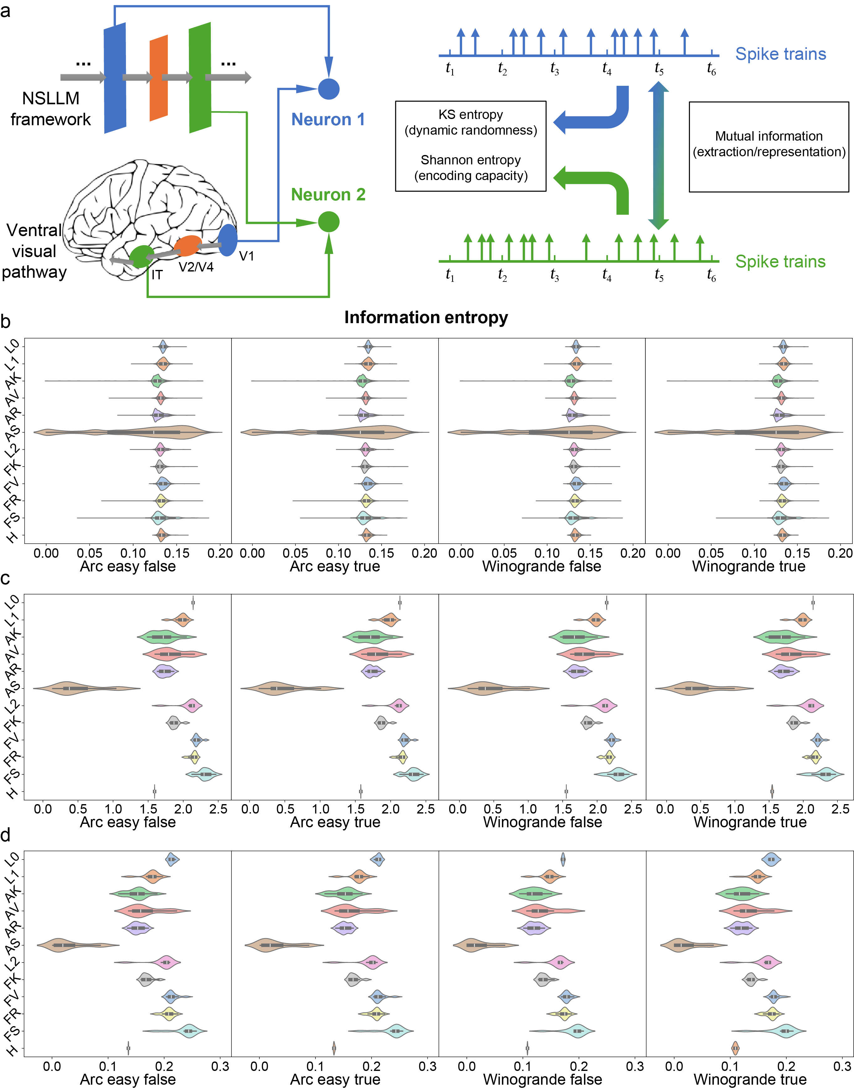 通过NSLLM框架将LLMs的行为转化为神经动力学模型(例如,脉冲列),可以分析其神经元的动态(如通过Kolmogorov-Sinai熵度量的随机性)以及信息处理的过程(如Shannon熵和互信息)。这有助于解释NSLLM的计算角色。实验结果表明,在处理无歧义文本时,模型能够更有效地进行信息编码,从而区分含歧义文本与无歧义文本。(例如,中间层在处理含歧义文本时呈现更高的归一化互信息;AS 层表现出独特的动态特征,显示其在稀疏信息处理中的作用;FS 层的 Shannon 熵更高,表明其具备更强的信息传递能力。此外,互信息与 Shannon 熵的正相关也说明,高信息容量的层更擅长保留输入的关键信息)。因此,通过将神经动力学与信息度量相结合,该框架为LLM机制提供了生物学上可解释的见解,同时有效减少了数据需求。