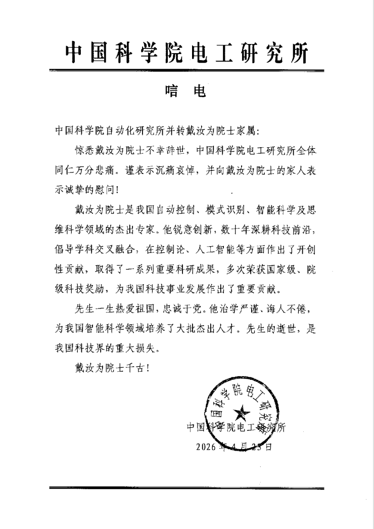 中国科学院电工研究所 唁电