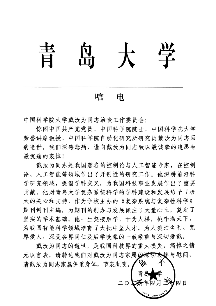 青岛大学 唁电